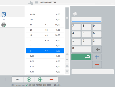 Money can be entered in denomination and checks, vouchers etc can be accounted too.