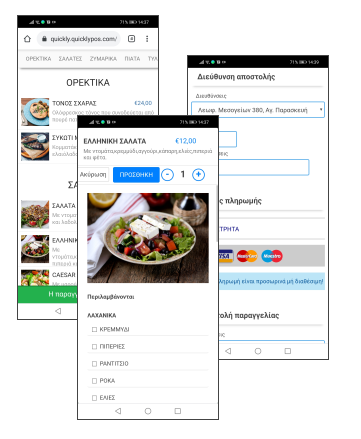 Digital Menu and Ordering from the customer's device with QR code and credit card payment. Direct change of prices and item availability from your POS to Quickly.
